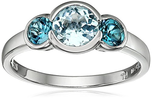 -. Title : Sterling Silver Gemstone 3 Stone Ring, Size 7