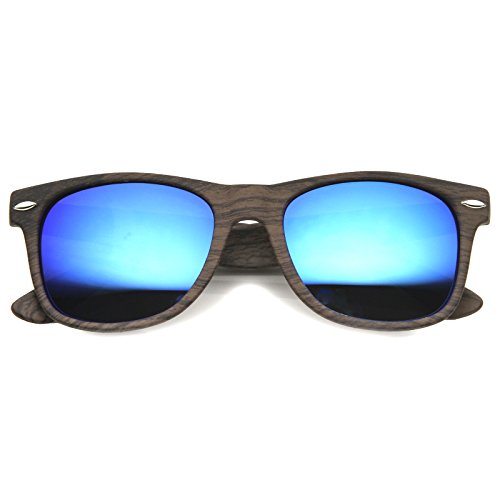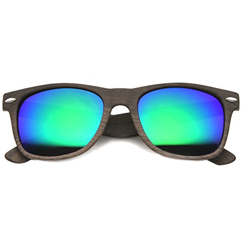Studio : frameoptic Publisher : frameoptic Product Description Adventure outdoors with these horn rimmed sunglasses featuring a wooden printed frame and stylishly wide temples. Complete with vibrant colored mirror lenses for an eye-catching effect, these bold sunglasses are an accessory must-have. Wear it for a day outdoors or exploring a new city, these wooden horn rimmed sunglasses can be paired with any look. Made with plastic based frame, metal hinges, and reflective UV400 protected lenses. Lens Height: 42 mm | Lens Width: 58 mm | Bridge: 18 mm | Frame Total: 145 mm 0