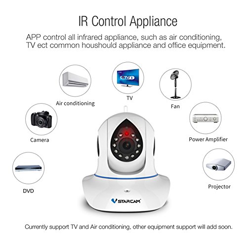 - -IR Control IP Camera, Universal remote controller, support remote control TV, air conditioner, projector and other device with remote control function.