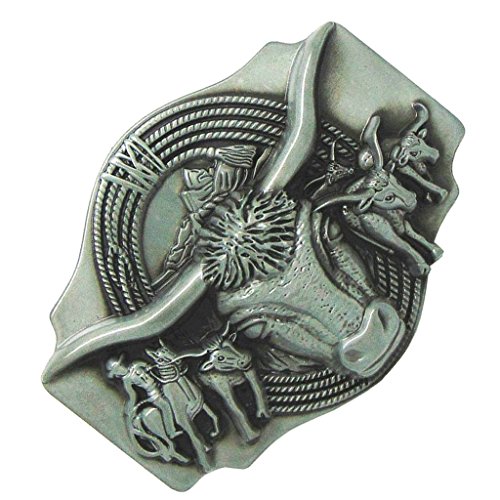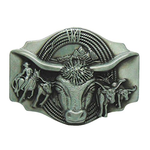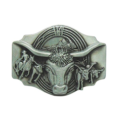 Description: - Indian Rodeo Animal Bull Bullfight Longhorn Matador Buckle Design - Vintage antique silver tone belt buckle Fashion Jeans Accessories for Boys Mens - Suitable for Belts width up to 1.5inch