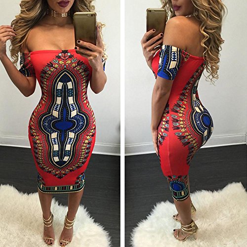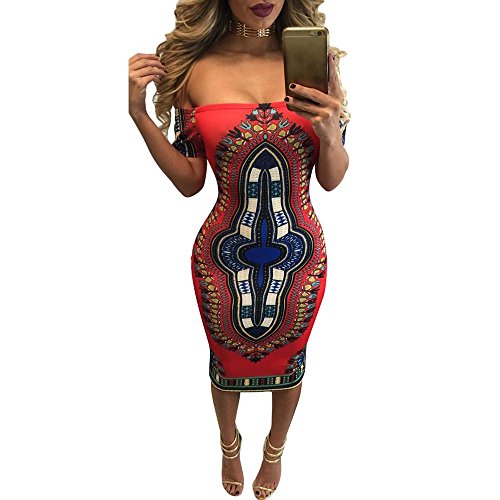 -. Title : Hot Sale!Canserin Women Sexy African Print Off Shoulder Short Sleeve Dress