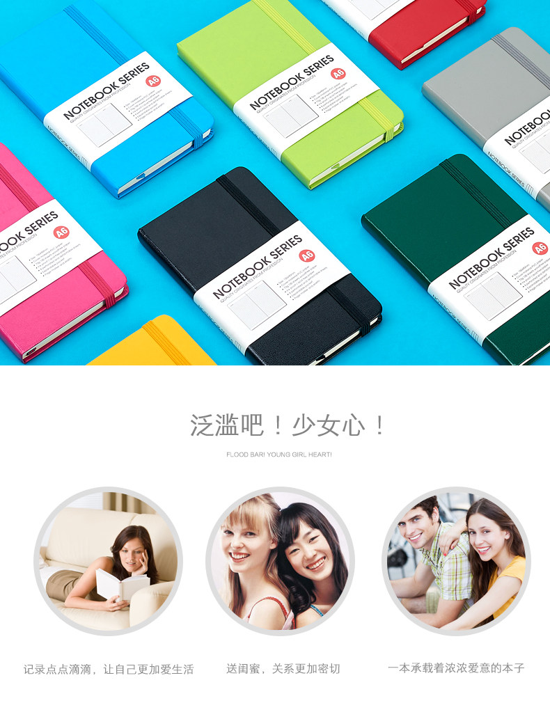 笔记本记事本日记随身小本子手帐糖果色A5A6绑带