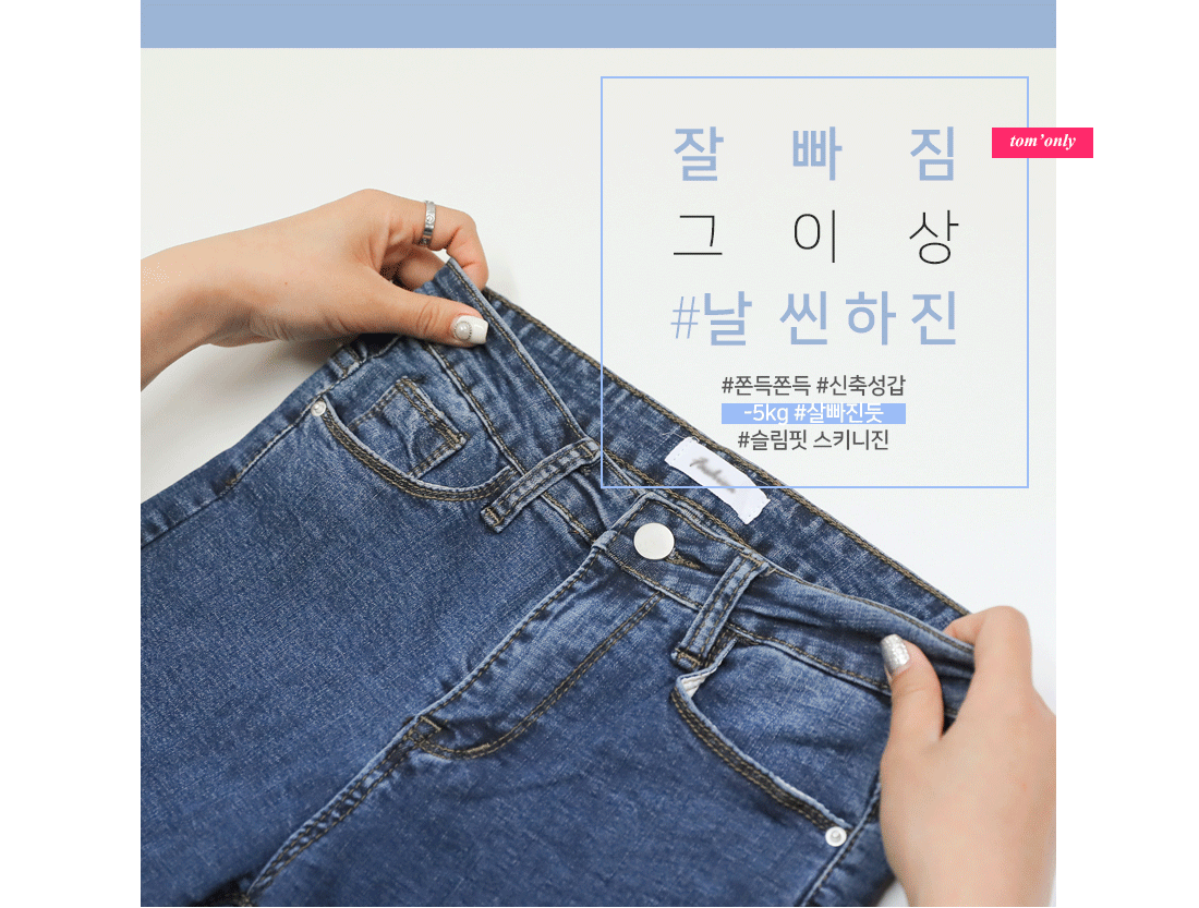 허리부터 발목부분까지 슬림하게 떨어지는 스키니 핏으로