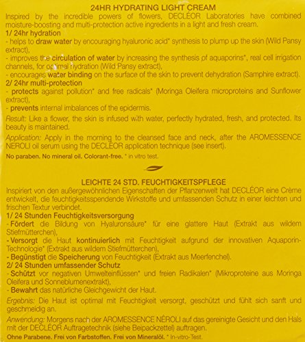 -. Feature : Skin care product from the designer house of Decleor A 24hr moisture activator light cream for women Colorant-free No parabens and no mineral oils 50ml jar
