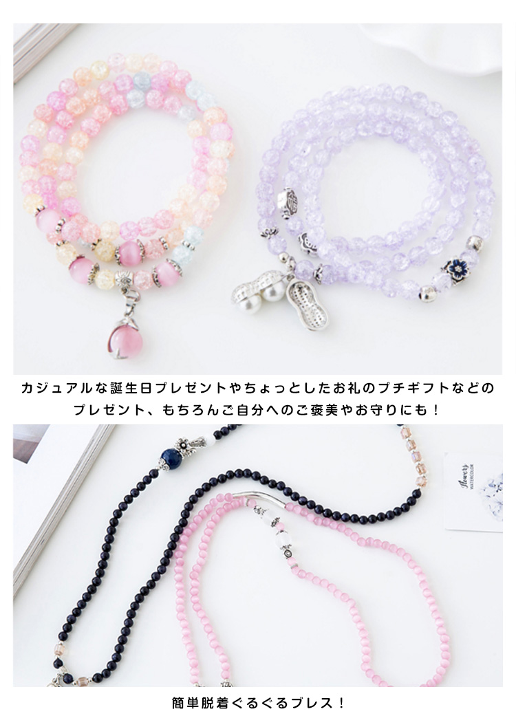 | 付け外しが簡単な3連(4連)タイプのブレスレット!6mm玉で心地の良い大きさ!カジュアルな誕生日プレゼントやちょっとしたお礼のプチギフトなどのプレゼント、もちろんご自分へのご褒美やお守りにも! | |
