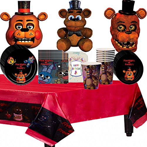 -. Binding : Toy -. Brand : Five Nights at Freddy's -. EAN : 0724519916651 -. Feature : 16 Five Nights at Freddy's Lunch napkins, 8 Five Nights at Freddy's paper cups / 8 Five Nights at Freddy's Lunch plates / 8 Five Nights at Freddy's Dessert plates / 1 Five Nights at Freddy's Plastic Table Cover / 1 Glow in the dark Happy Birthday Temporary Tattoo with instructions on back, -. IsAdultProduct : 0 -. Label : Five Nights at Freddy's -. Manufacturer : Five Nights at Freddy's -. ProductGroup : Toy -. ProductTypeName : TOYS_AND_GAMES -. Publisher : Five Nights at Freddy's -. Studio : Five Nights at Freddy's -. Title : Five Nights at Freddys Deluxe Party Pack Decorating Bundle -. UPC : 724519916651
