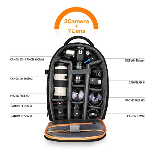 This K&F backpack with large main opening offers multiple storage options for your DSLR cameras, lenses, tripod, flashes,10-12" tablet and other accessories.
