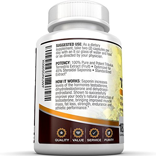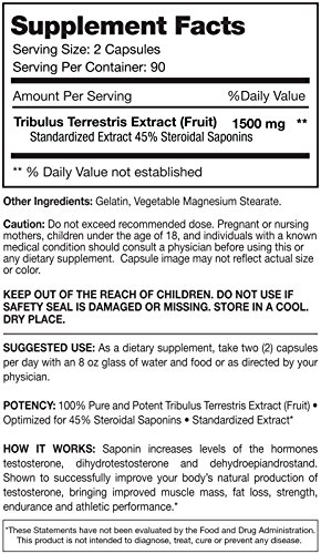 ★WHAT IT IS: Tribulus is a plant-based supplement derived from the Tribulus plant. The steroidal saponins found in the plant form of Tribulus. Go ahead and compare our Tribulus to any on the market. Forget those guys trying to sell you 10% or even 25% of Steroidal Saponins. We cram 45% Steroidal Saponins in every single capsule.