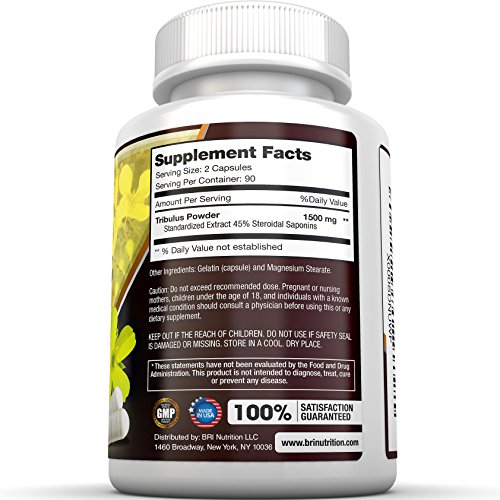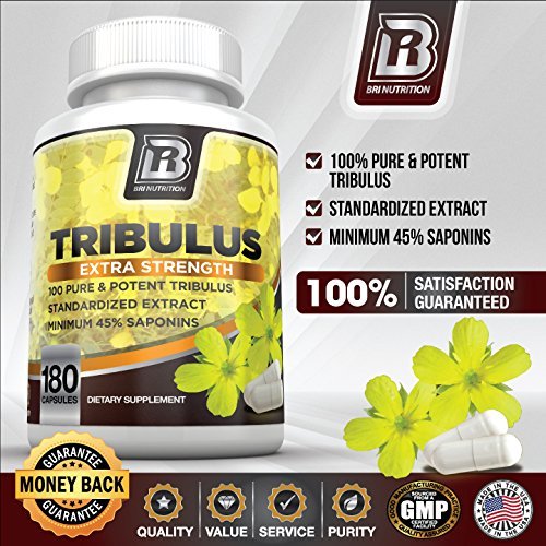 BRI Nutrition Tribulus Terrestris - 180 Count 45% Steroidal Saponins - Highest Purity On The Market - 1500mg Maximum Strength Bulgarian Tribulus - 90...