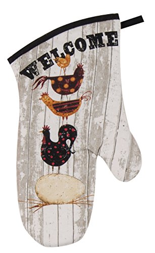 - Barnyard print oven mitt offers protection from hot pot and pan handles to 200 degrees