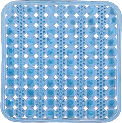 Melange 612409784506 Non-Slip Anti-Bacterial PVC Square Massage Shower Mat,Clear Blue,17.75 X 17.75"