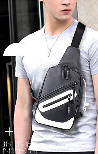 -. Feature : It's made of rain proof oxford materials,so if it rains you don't have to worry about anything that it is inside. / Size:6.3*2.8*10.2 inch(L*W*H).With a long crossbody adjustable strap,smooth zipper. / Chest bag for men external USB Interface: You can easily and conveniently charge your phone, tablet and other devices without opening up the backpack. / Designed for comfort:can be used both as chest pack and shoulder bag, messenger bag, travel bag; Satchel strap is adjustable and can be left or right shoulder, Fit both regular and plus-size person / Delivery: The effective time is about 3-5 business days by expedited shipping or 12-24 business days by standard shipping