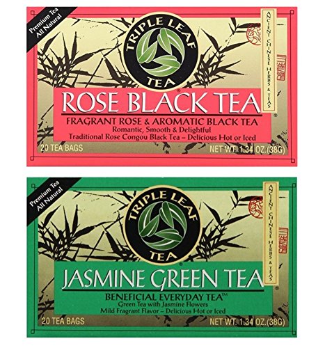 -. Binding : Misc. -. Brand : Triple Leaf Tea -. EAN : 0752454689651 -. Feature : Smooth and delightful / Traditional teas / Enjoy hot or iced / Convenient 2 flavor sampler - 1 of each - lets you try flavors before comitting to a case / This item is not a manufacturer-created variety pack and will not be sent in the original manufacturer's packaging -. IsAdultProduct : 0 -. Label : Triple Leaf Tea -. Manufacturer : Triple Leaf Tea -. PackageQuantity : 2 -. ProductGroup : Grocery -. ProductTypeName : GROCERY -. Publisher : Triple Leaf Tea -. Studio : Triple Leaf Tea -. Title : Triple Leaf Tea 2 Flavor Variety Bundle: (1) Rose Black, and (1) Jasmine Green (20 Count) -. UPC : 752454689651