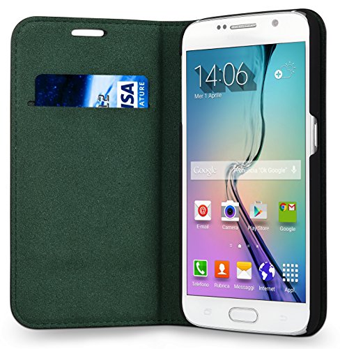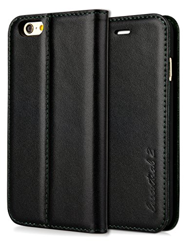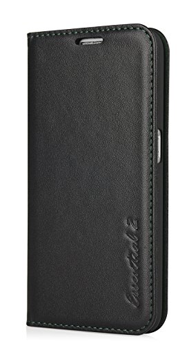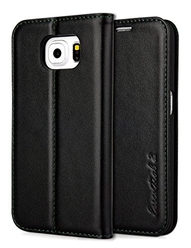 iXCC Essential 2 Series Samsung Galaxy S6 Genuine Leather Wallet Case With Stand Feature - Black