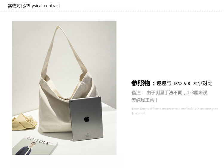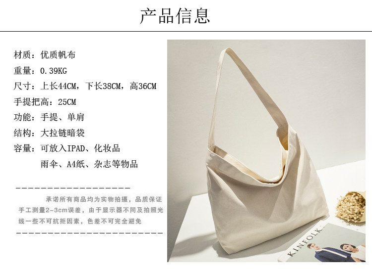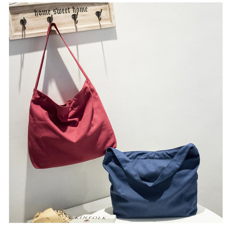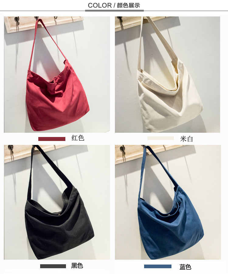 小清新帆布包 潮女简约休闲托特包纯色单肩包大包