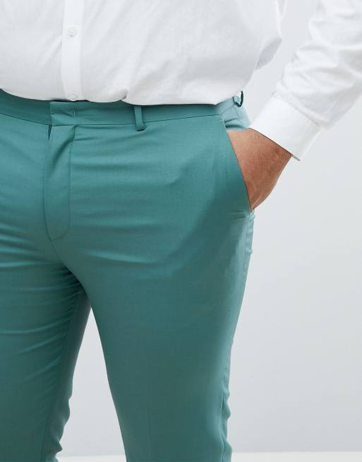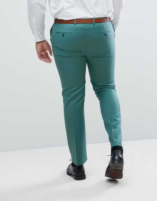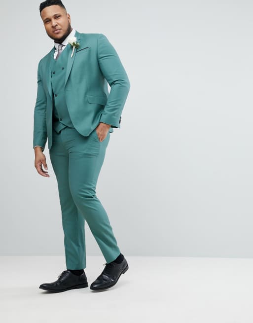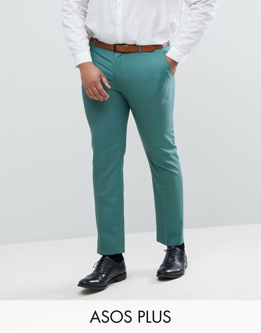 ASOS PLUS Wedding Slim Suit Pants In Pine Green 100% Wool