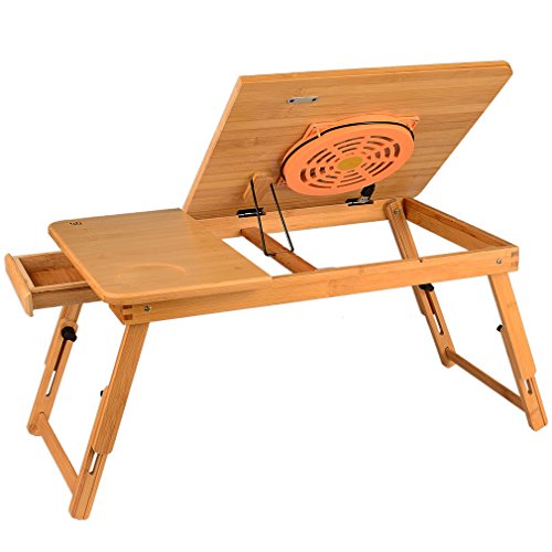 -. Title : Lapdesk Foldable Laptop Bamboo Table Bed Tray Stand With USB Cooling Fan - 22"