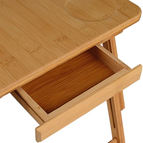 -. Feature : WHY LIMIT YOURSELF- Sometimes, we just want to want to use our laptop, tablet, or book where we are most comfortable, stimulated, or inspired, like on the living room couch, the old reclining chair in front of the TV, the porch bench, the poolside lounge, or even my personal favorite, bed. The Lapdesk is the perfect accessory for these occasions. / BE COMFORTABLE- No more jerry rigging a "pseudo-lapdesk" with a pillow or a folded up blanket or an old unabridged dictionary. The Lapdesk is designed specifically for using your laptop, tablet, or book in the most scenic, comfortable, rejuvenating settings. There's even a cup groove on it to keep your drink from sliding around. There's also a side drawer to conveniently store all your accessories. It measures 21.6" x 13.5" (55cm x 34.5cm). / VENT & FAN- Using makeshift items as "pseudo-lapdesks" can sometimes stifle airflow causing your laptop to get overheated. Not good. Use the real Lapdesk instead. It has a beautifully carved vent with a USB powered fan beneath it to thoroughly cool and circulate air so your laptop will not overheat. / NIFTY FEATURES- Top surface angle and legs are fully adjustable so you can achieve the ideal ergonomics. There's even a mini shelf on the top surface that keeps a laptop, a tablet or a book from sliding off when the top surface is not completely flat. The legs are also fully collapsible for convenient storage. It's also made from sustainable bamboo, an added bonus. / 100% SATISFACTION GUARANTEED - Here, at Nicely Neat, we want you to be satisfied with your purchase. You are backed by our 30 day no questions asked money back guarantee so you can buy with confidence.