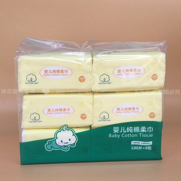 | > Product Name: Cotton Age baby soft cotton towel / pumping paper special baby soft wet towel thicker section 100 pumping x6 package > Item No: 800-001874 > Size: 20cmX10cm > Weight: 6 total package weight 480g ± 48g > Material: 100% natural cotton quality US > Packing: 100 pumping / pack / 6 pack |