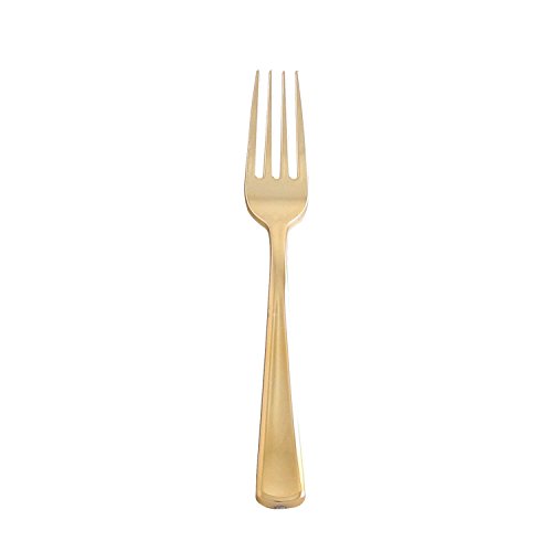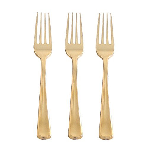 ✅ HIGH QUALITY: Durable and won't scratch and break easily. High Gloss, Polished finish looks elegant. Made of disposable and reusable plastic that is sturdy and durable, with a feel like real Gold Plastic forks in your hand. "