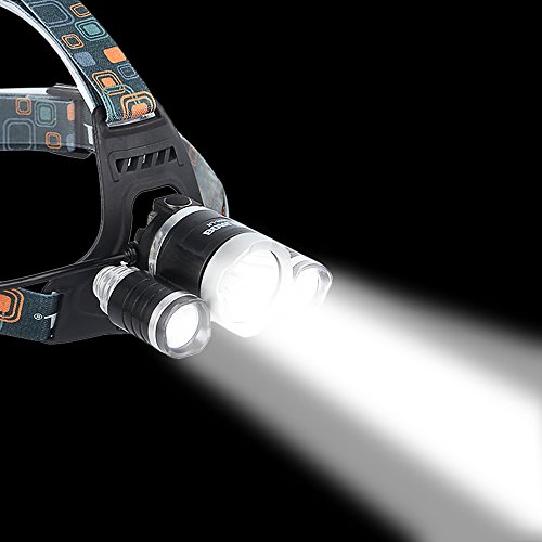 - Feature : Powered by 1 or 2 18650 batteries (included) / Waterproof design and rechargeable / Suitable for traveling ,climbing,camping,hunting,etc / 4 modes : low (1 LED ),mid (2 LED), high(3 LED), strobe(3 LED) / Adjustable thick strap,which is suitable for anyone