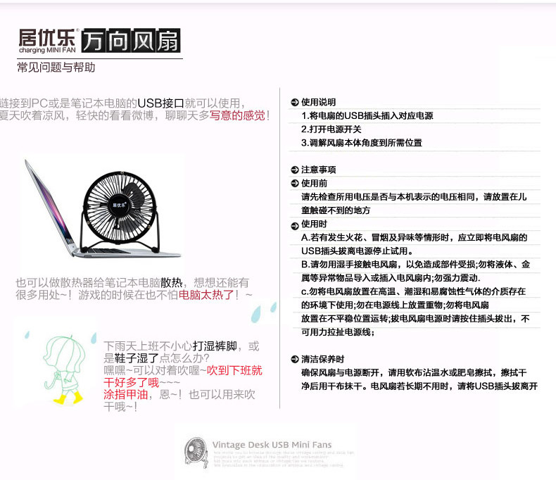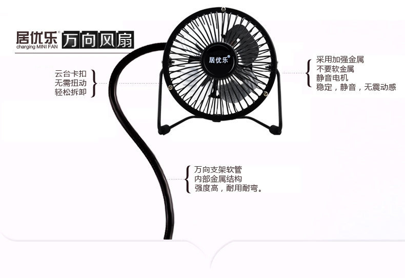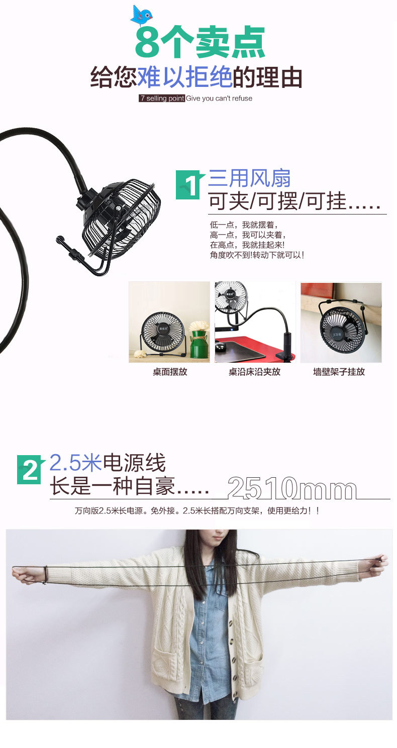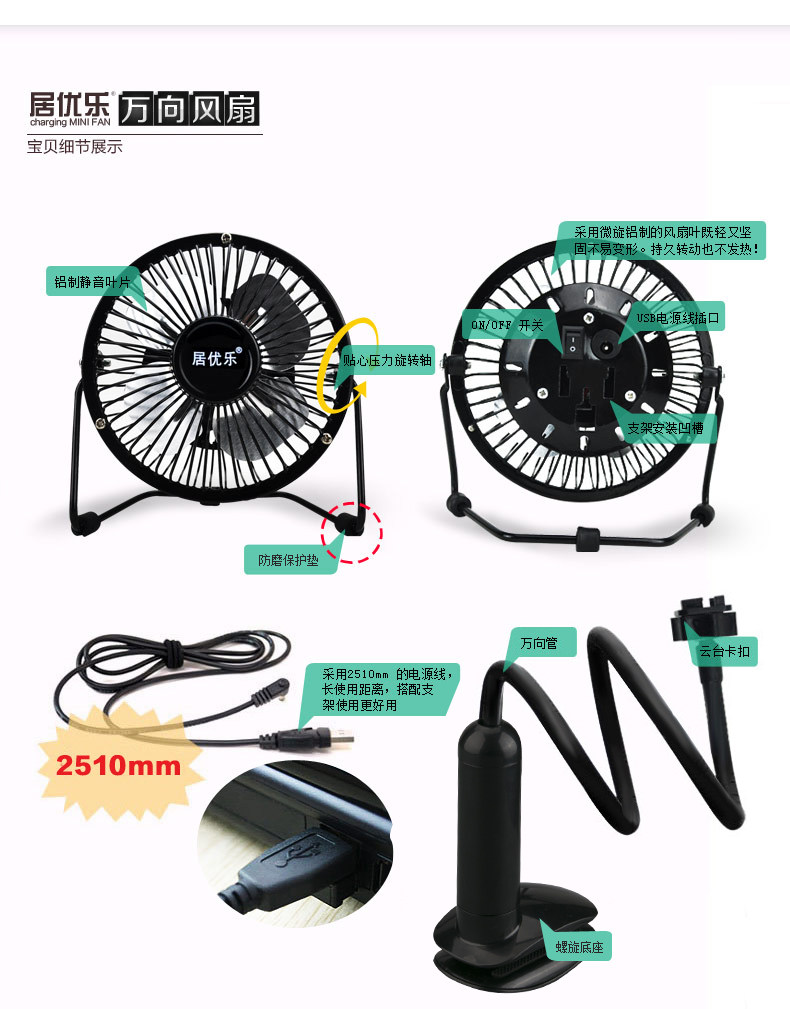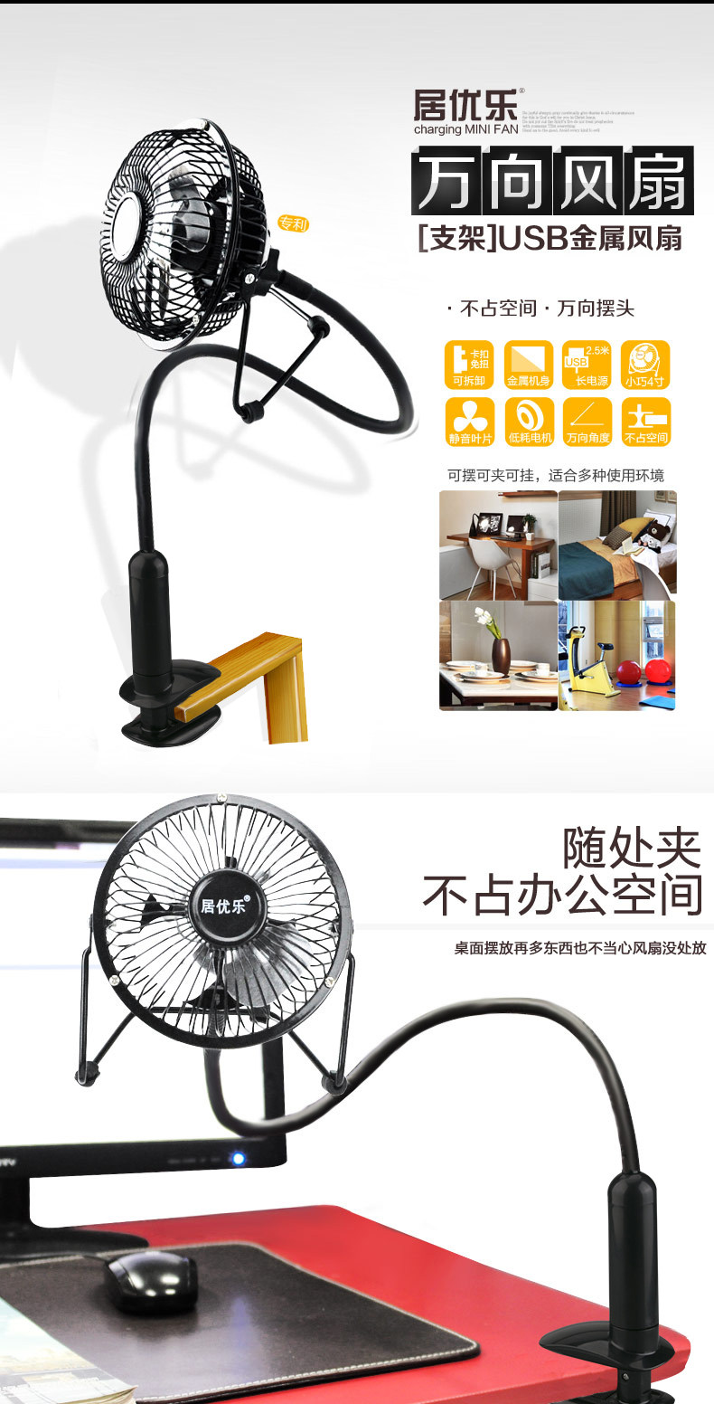 Features: Removable / metal body / 2.5m USB long power / mini4 inch / silent blade / low consumption of motor / universal angle / save space