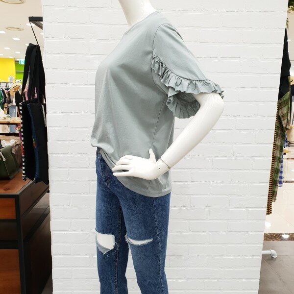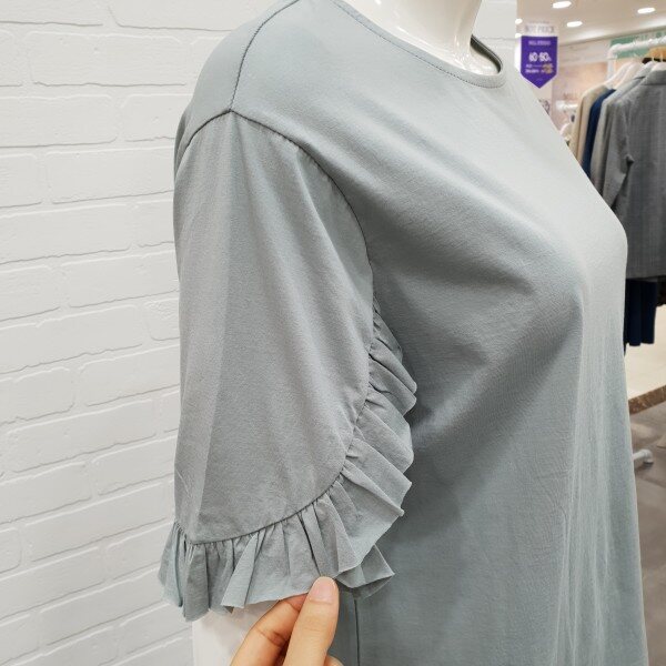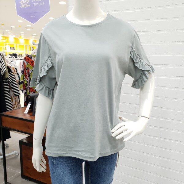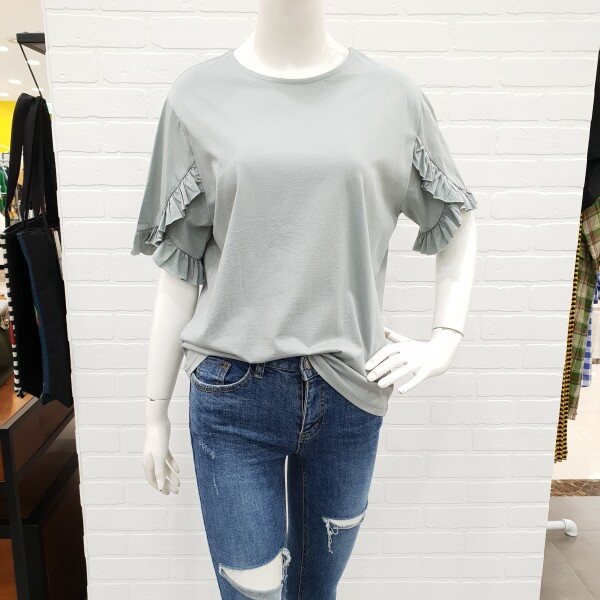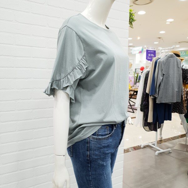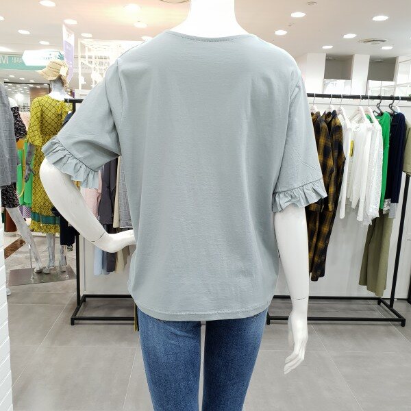 소매프릴이 예쁜 티셔츠예요.스커트나팬츠에 깔끔하면서 여성스럽게 연출 하시기 좋으실꺼예요.소재도 부드러워 착용감도 좋으며 살짝 루즈한 핏이 편하게 입기에도 좋아요.