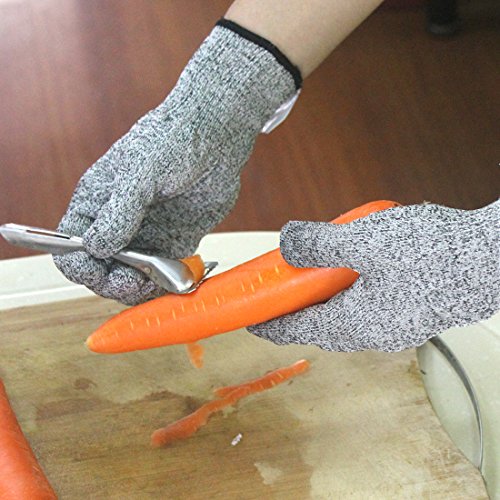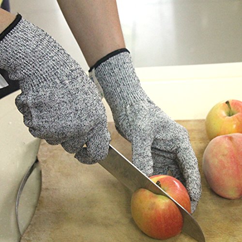 -. Feature : Highest Level 5 cut resistant, 4 times stronger than leather, Perfectly protect your hands / 100% Safe and food touch grade / Light weight, breathable and elastic, comfortable wearing for small and large hands / Multifunctional use for kitchen, whittling, cutting, caving,slicing,repairing and so on / Durable and machine washable