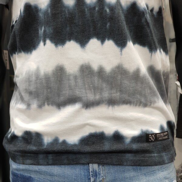 버커루 유니 물나염 스트라이프 반팔티셔츠입니다.독특한 물나염 스타일의 스트라이프 패턴이 들어간 남여공용 반팔 티셔츠입니다.