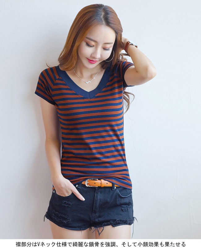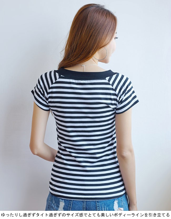 | 商品名 | レディース 半袖Tシャツ ボーダー柄 Vネック ラグランスリーブ カットソー 女性用 トップス 夏物 マリンセーラー Tシャツ 薄手 スクール風 着まわし |