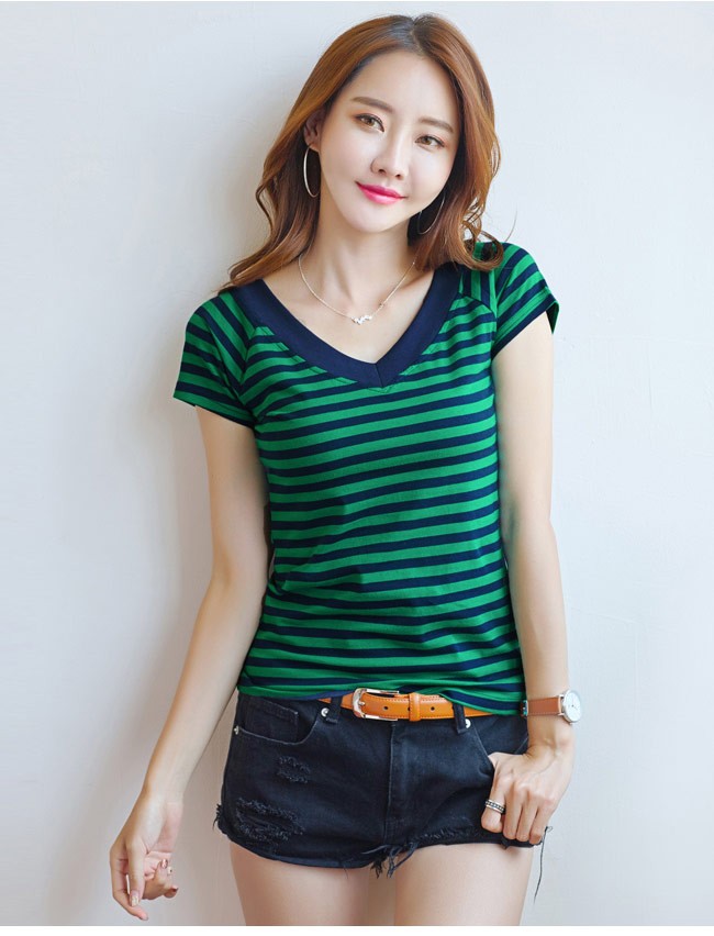 レディース用の半袖Tシャツが登場 吸湿性・通気性に優れた綿混紡素材を厳選、夏に最適な肌触りをもたらす ゆったりし過ぎずタイト過ぎずのサイズ感でとても美しいボディーラインを引き立てる 襟部分はVネック仕様で綺麗な鎖骨を強調、そして小顔効果も果たせる 定番のボーダー柄デザインは爽やかなマリン風を取り入れ、季節感も溢れる パンツコーデにもスカートコーデにも似合い、ボトムス選ばずに着れる一枚 | |