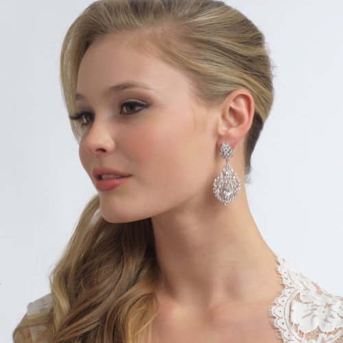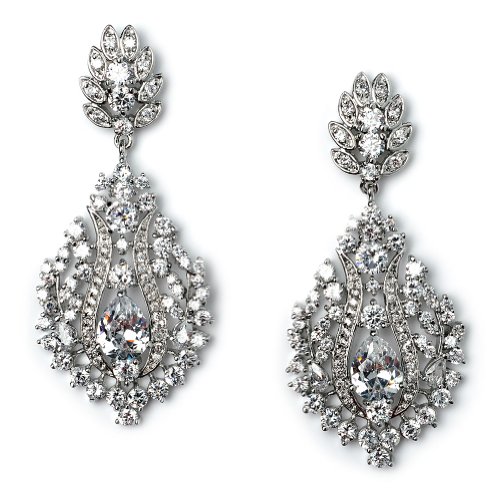 -. Title : USABride Cubic Zirconia Dazzling Floral Designer Chandelier Statement Earrings 1527