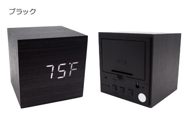 | 時間だけでなく日付や温度、湿度がLEDライトで表示され、アラーム機能もついたキューブ型の置時計です。 |