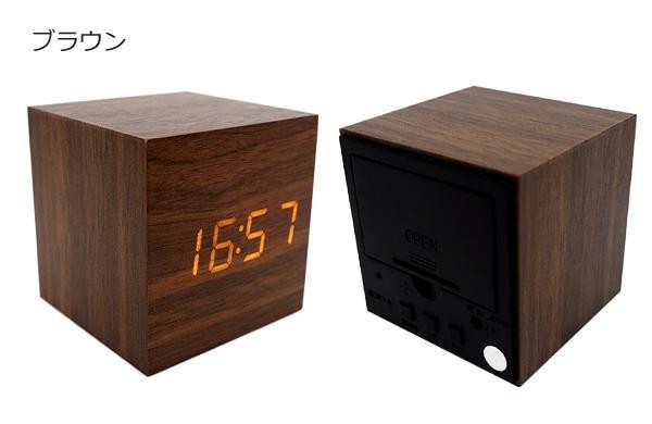 | ウッド風に仕上げたキューブ型の置時計。 |