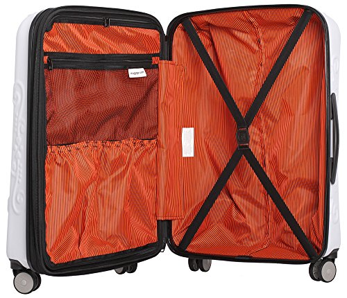 -. Brand : IT Lage -. ClothingSize : One Size -. Color : White -. Department : unisex-adult -. EAN : 5056003924237 -. Feature : Dimensions & Weight: 21.5" x 14" x 9" (+3" expansion); 6.83 lbs. / Central opening and expansion system for easy packing and stability; Zippered interior divider creates two separate packing compartments for superior organization / Interior divider features 2 elastic tie-down straps, a zippered mesh pocket and 2 slip pockets; 3" expander for up to 25% extra packing capacity / 8 wheels for 360 degree maneuverability; Telescopic handle system / Easy-grab top and side handles -. ProductGroup : Apparel -. ProductTypeName : LAGE -. Size : One Size -. Title : IT Lage Skulls 21" Carry On Spinner - White
