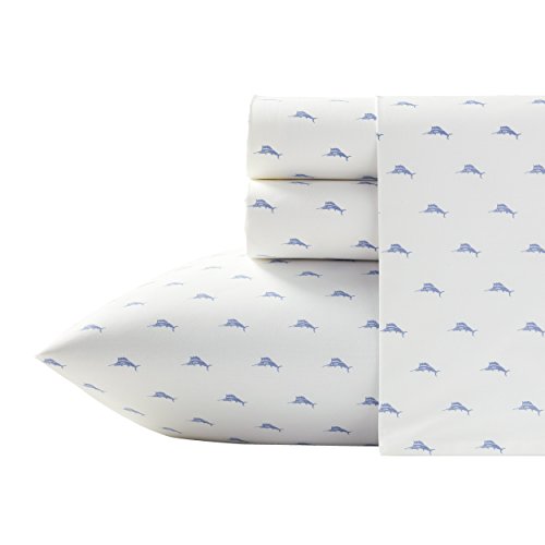 Tommy Bahama Sailfish Percale Sheet Set, Full, Ocean Blue