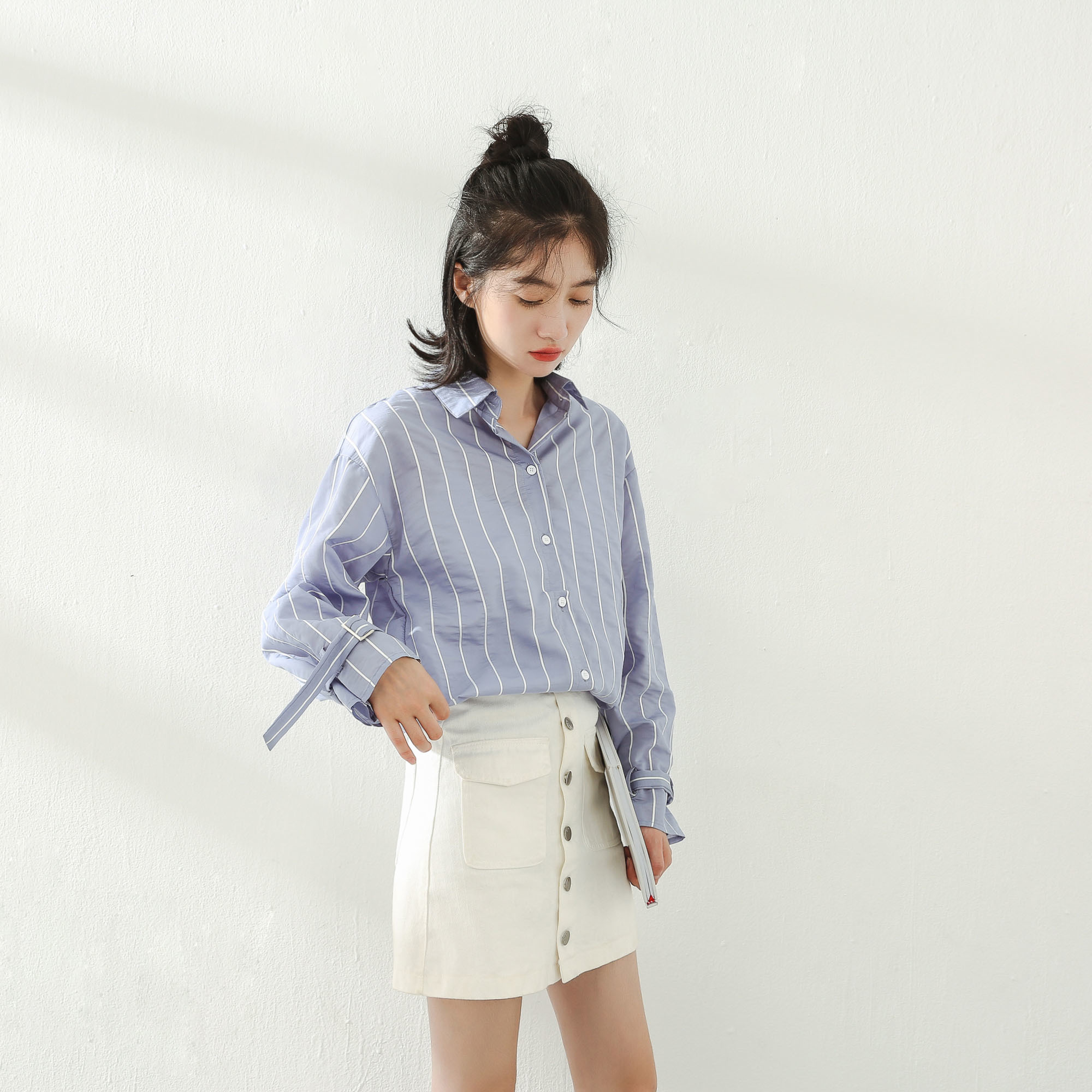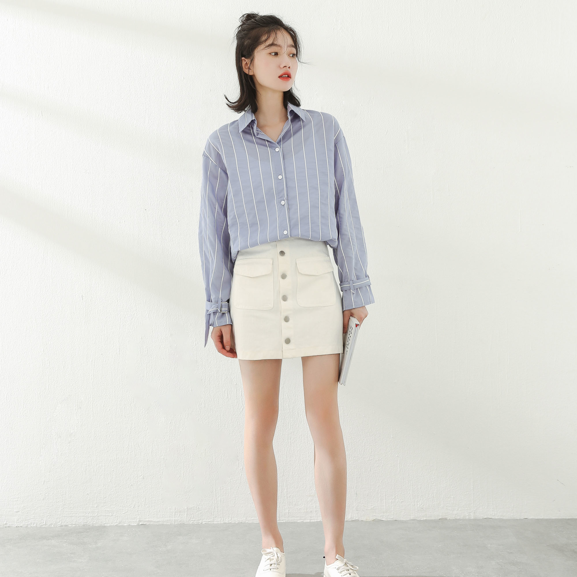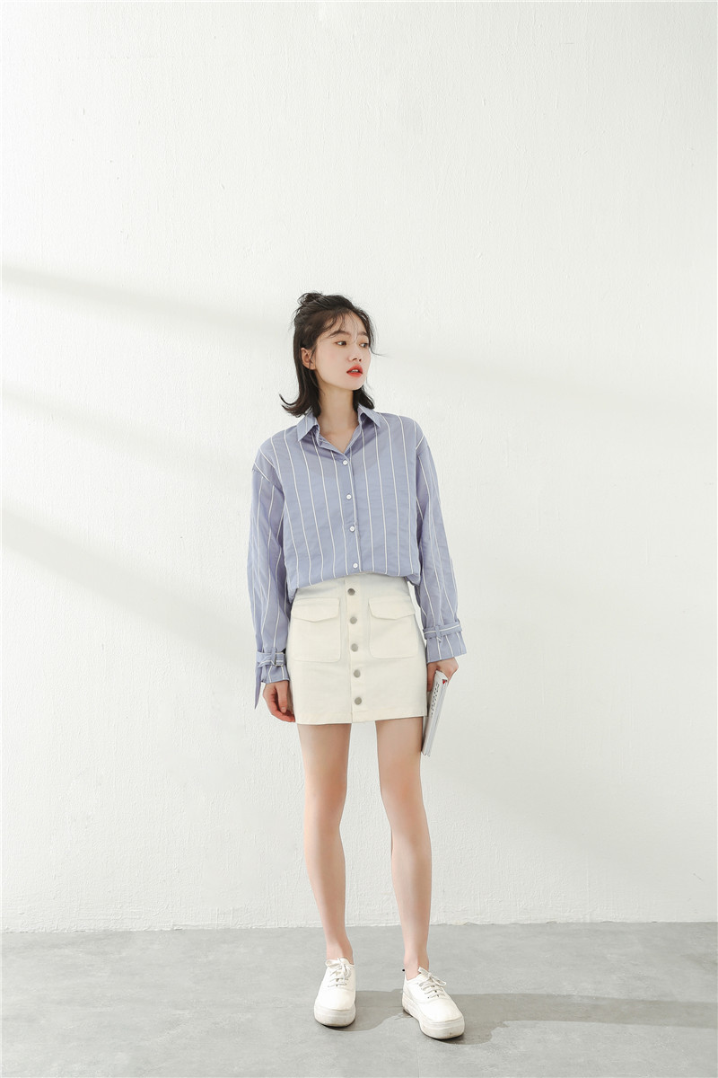 シンプルなカラーでオンオフ問わず、幅広いシーンに活躍するストライプシャツ。