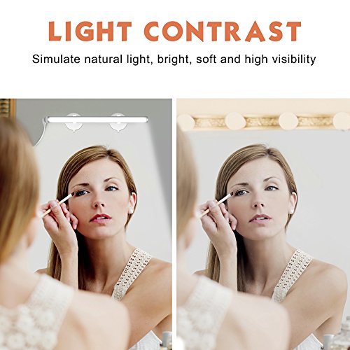 - 【Natural Makeup Lighting】-Simulates natural sunlight, Bright, Soft, Long-lasting High CRI and Natural light glow, So you can make a perfect makeup, Hold with 2 suction cup holder and 180 ° flexible rotated for change the lighting directions easily. sweet christmas gift for Girlfriends, Moms, Sisters,Makeup Gurus & More