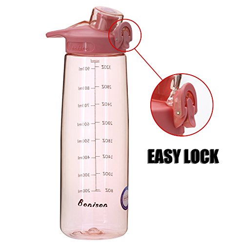 BONISON 36 OZ Wide Mouth Sports Water Bottle Flip Top Lid With Handle Leak Proof Bpa Free Spill-Proof Big Capacity Bottle For Travel Yoga Running Outdoor Cycling Hiking Or Camping