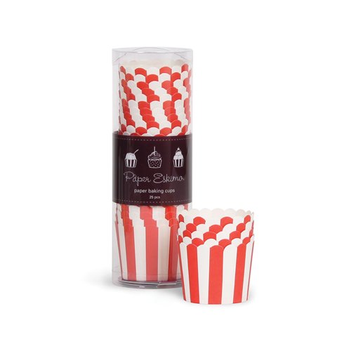 Paper Eskimo Baking Cups with Red Stripes, 25-Pack