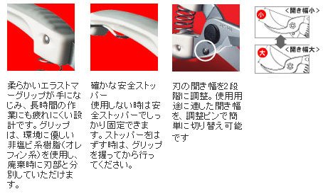 Features The blade is wide open, thick branches can be cut easily.