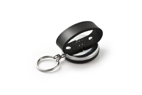KEY-BAK #1BL Retractable Reel with 24 in. (61 cm) Stainless Steel Chain, Black Front, 2.25 in. Leather Belt Loop, Split Ring
