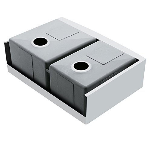 - Exterior Dimension: 33-in. L x 22.25-in. W x 9.875-in. H, Interior Dimensions: Larger Basin 16.75-in. L x 18-in. W x 9.0625-in. H, Smaller Basin 13-in. L x 18-in. W x 9.0625-in. H