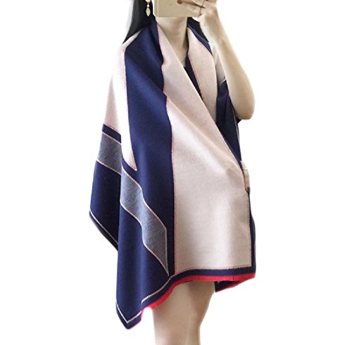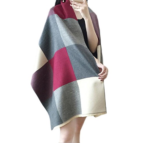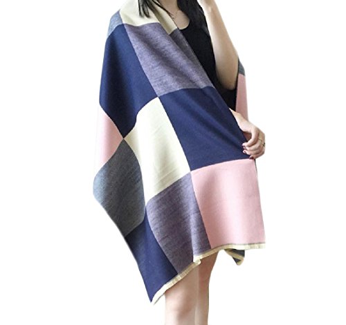 | (FreelyWomen)/Accessories/Cold Weather Accessories/DIRECT FROM USA/Freely Women Velvet Plaid Warm Thick Spell Color Trendy Scarf Wrap Cloak |