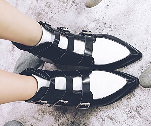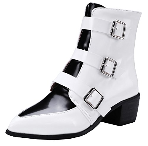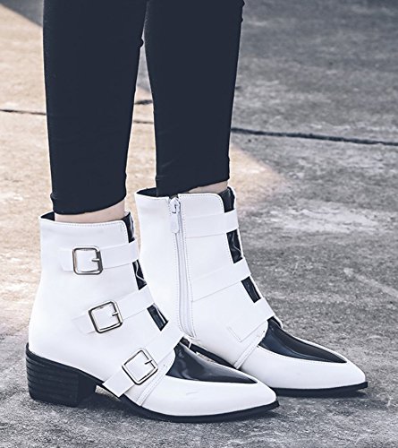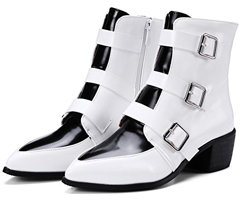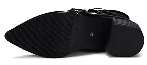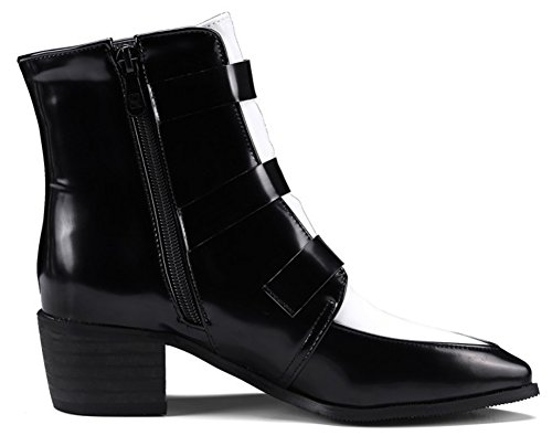 Binding : Apparel Product Description A pair of chic boots can display your nature beauty very well. This pair of shoe could empower you and make you more confident. The heels measure 1.9 inches. You will look slimmer and slender in their mid heels. This pair of shoes features solid waterproof upper and ankle high. You will look sexy in their pointy toe. The decoration of triple buckle will offer you a chic look. The full length zipper is easy for get on and off. The sole is made of good rubber. You will feel comfortable in their soft bottom. You could wear them with jeans, dress and skirts. The sole is made of good rubber. It's really lovely and comfortable. 0