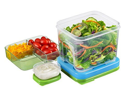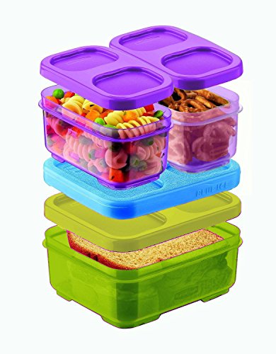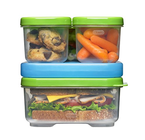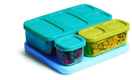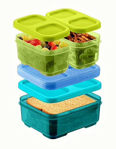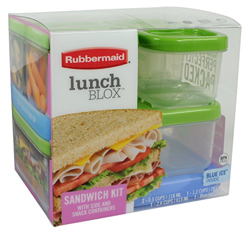 The Rubbermaid Lunch LunchBlox Sandwich Kit is designed to make taking lunch to school or work more convenient and organized. With one 2.6 cup flat container, one side container for fruits or chips and two small containers for additional items and a third container for additional sandwich toppings, taking a delicious lunch to school or work has never been easier. All containers snap together around the included medium Blue Ice pack so foods stays crisp and fresh without refrigeration. Designed to work together to save space, the kit will stay organized in any lunch bag. All BPA-free LunchBlox containers are leak-proof, microwave-, dishwasher-, and freezer-safe. Kit includes (1) 1.8-Ounce, (1) 1.5-Cup, (1) 5.2-Cup, (1) Medium Blue Ice pack