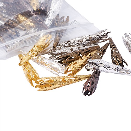 Pandahall 10sets 5-Petal Iron Mixed Color Bead Cones Filigree Beads Caps 41x8mm DIY Crafting Earring Jewelry Makings