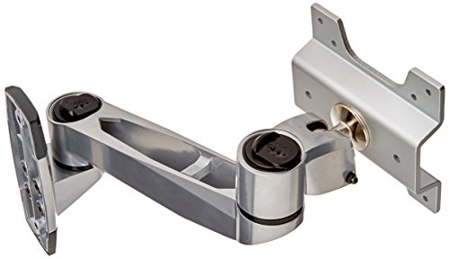 Designed for Apple Monitors; Wall-mountable; Wall plate dimensions: 5-3/4" (L); 1-7/8" (W, narrowest part); 2.5" (W, widest part); 3/8" (D); Quick mount & quick release designs at 2 connecting points: swing arm and monitor end