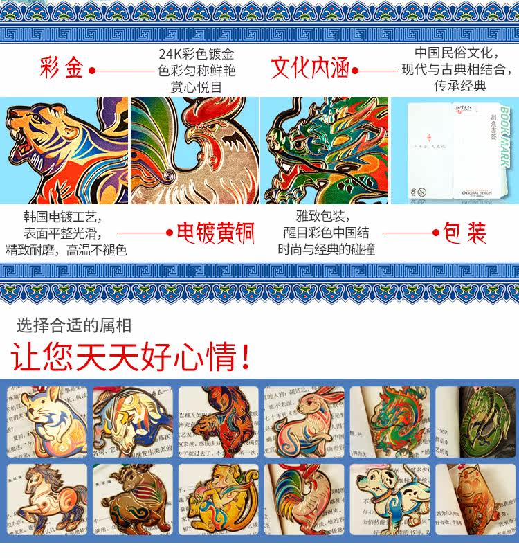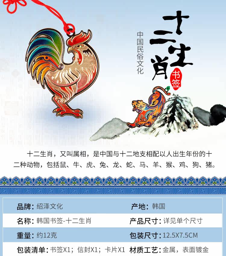 彩金金属书签创意十二生肖 中国结风情老师同学礼品生日礼物