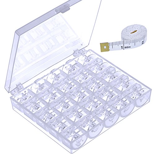 Mudder 25 Pieces Transparent Plastic Sewing Machine Bobbins Spools with Measuring Tape and Case for Brother Singer Babylock Janome Kenmore